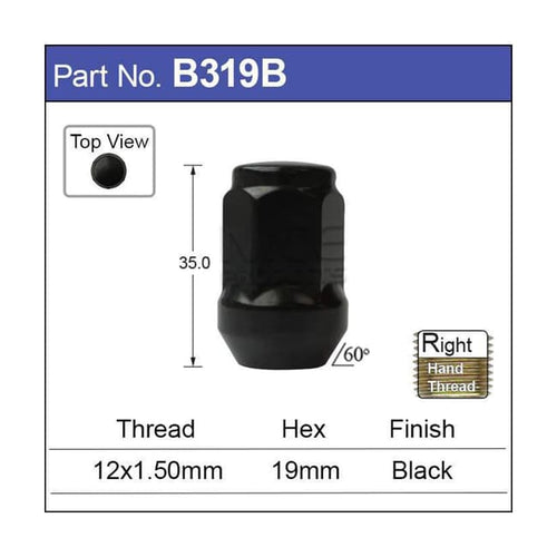 Nice Products B319B Black Wheel Nuts PKT 25